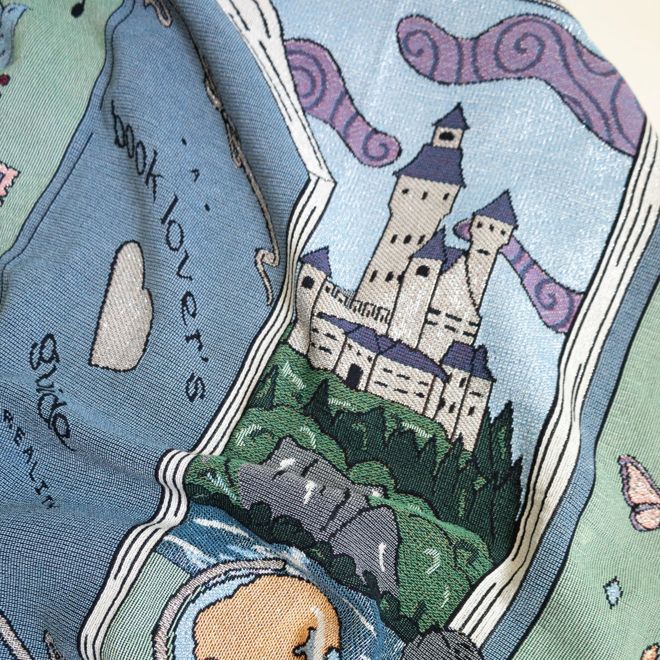 This throw blanket is a dream come true for book enthusiasts. Woven with metallic silver yarn, it beautifully embodies the spirit of romance and fantasy genres.