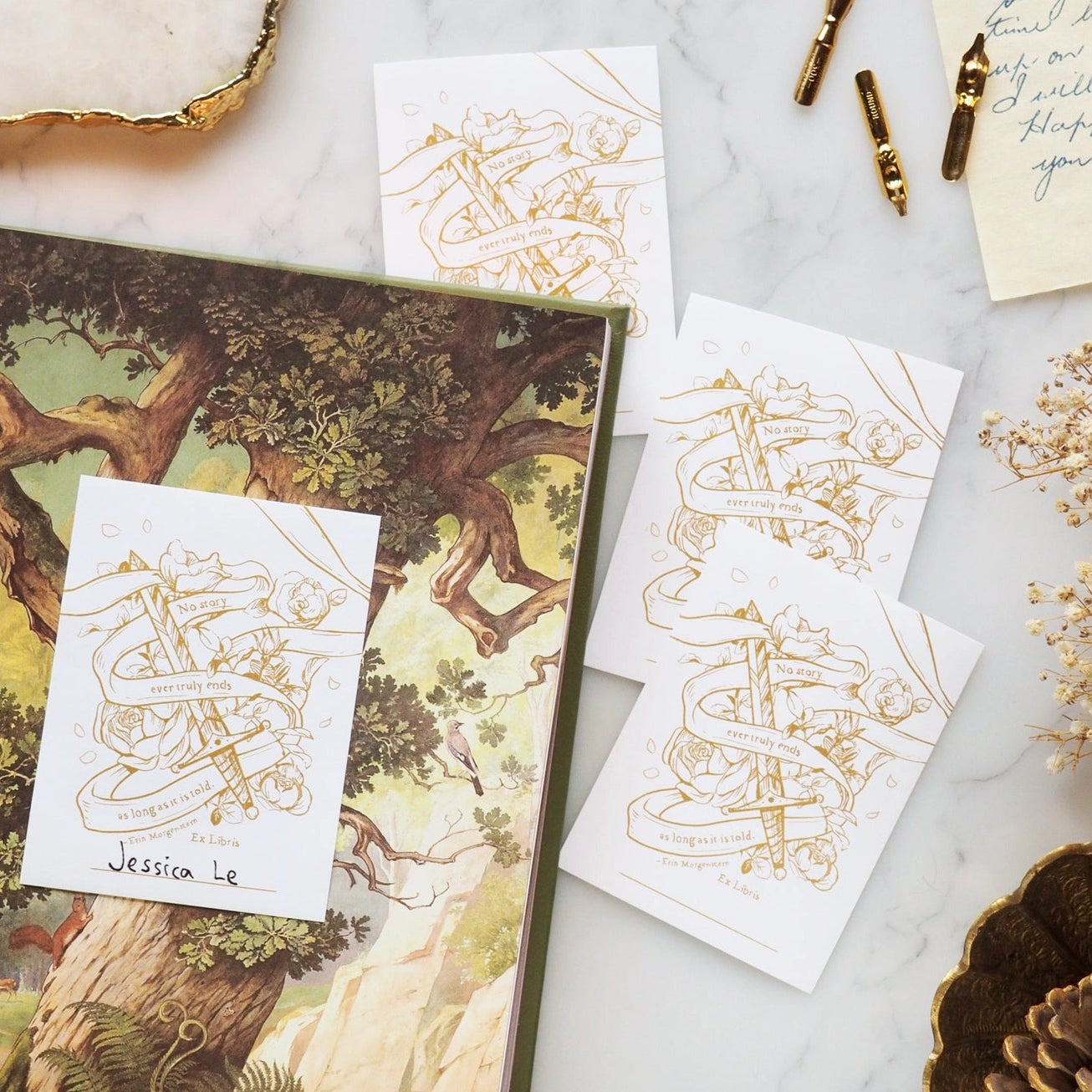 These intricately designed bookplates are a sophisticated name tag for your books, perfect for marking your collection. When lending books to friends, simply place one on the inside front cover with your name, ensuring your books are easily returned to you. Book plates, or ex libris (Latin for 'from the library of'), have been used since the 1400s.